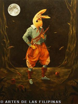 When I was in high school Jerson asked me to attend a Borlongan exhibition entitled “Mauway” and there, I was inspired to paint. I remember two pieces from that show that made an impact on me as a teenager. These works were entitled “Earthquake Drill” and “Jamming Ground.” I never thought that art could be that simple and witty. After that show, I took my sketchpad and started drawing. I wanted to make something like that. I wanted to experience how it was to actually be able to make a picture that people understood. It was witty. It was relevant. It was edible. Later on, I came across the works of Mark Justiniani, Tony Leaño and Ferdie Montemayor and grew even more inspired by studying their works. Add that to a barkada of art students like Joven Mansit, John Paul Antido, Dennis Fortozo and Jaypee Samson. Fine arts just became a more obvious path for me. I think I could be anything but a hyper realist. I simply don’t have the patience to work with such tedious details. But who knows? Maybe one day I’ll try.