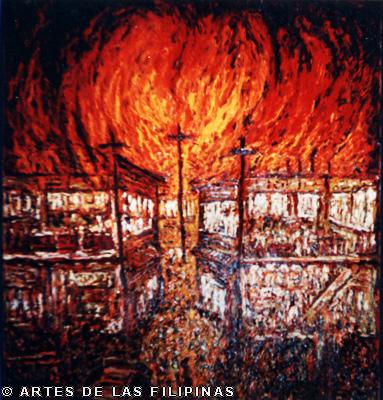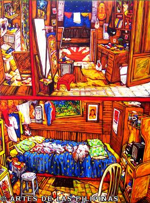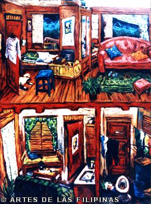 Ang title po nung piyesa na isinali ko nung “Alay 1” ay ang aking winning piece sa Metrobank Young Painters Annual 1997. “Reunion” ito po yung panahon na sinisimulan ko pa lang yung mga interior paintings ko.