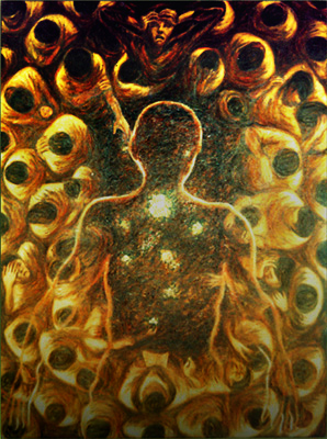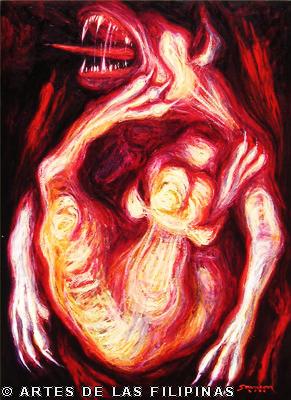Marami na po akong nagustuhan sa mga ginawa ko. Gaya ng “Nagsisikip na ding-ding” winning piece ko sa Philip Morris 1999. Last year ang iba pang naging paborito ko ay ung “Sa ilalim ng iisang langit” na kasama sa exhibit namin sa NOVA Gallery. “Sayaw ng kamatayan” from Boston gallery at “Amen” from Vargas Museum show naman.