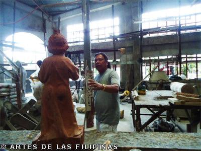 Equipped with dexterities in woodcarving, Layug and Flores would later embark on mastering the creative process, either by having formal education or doing research. Their educational background, however, is totally different. Layug felt the need to finish his education and get training and workshops. In 1978, he enrolled in the University of Santo Tomas where he took up Architecture and Fine Arts major in Painting. While studying, he would still accept projects, in order to hone his skills and generate money for his education. His first break happened when he was just 17 years old when he made a bas relief of a replica of Santiago Matamoros at the gate of Fort Santiago. In 1999, he travelled around Europe and visited countries such as Germany, Italy, France, Switzerland, Austria and Poland to observe churches and improve his skills in designing retablo. In three consecutive summers of 2007 to 2009, Layug went to Seville, Spain to study the art of estofado. He spent the whole month as an apprentice under Maestro Arteaga, a famous Spanish sculptor of liturgical pieces.