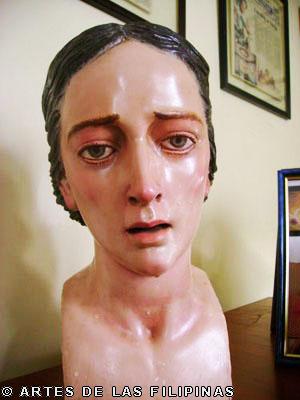 His works can also be categorized as “hyperrealist.” Layug gives utmost importance to every detail. There’s an attempt to (re)create an image as close to the real life model as possible. He creates sculpted pieces that seem alive in every detail, right down to veins, tears, eyelashes, discolorations on skin, dripping blood, etc.