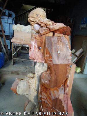 Both sculptors are utilizing wood as their primary material. Local and imported woods are used. Lumber is usually sourced from trees cut in Magalang and Arayat, as well as the nearby province of Zambales.