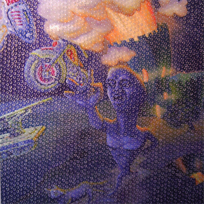 March 2010 — Considered as one the most hardworking and innovative artists of today, Cris Villanueva Jr.’s works draw ideas from commonplace objects, classical and popular culture, literature, art, history and his own life. He disregards the non-objective representation of subjects but concentrates instead in creating works of iconic power. In the early stage of his artistic career, he began to introduce a signature style of painting bubble wrap over his finished painting as a layer effect. Cris Villanueva also goes beyond the limits of paintings and can paint “any style and subject I find challenging and interesting.” While his works in the last five years are less serious in tone, many of his exhibited works and those found in private collections reveal his knowledge of art theory and his talent in painterly details. In this interview, Cris Villanueva tells his stint as an art director, his student years as a Political Science major at the Philippine Christian University then as a Fine Arts student at the University of the Philippines, his early years as a member of the Salingpusa and the Madruguada, the two winning works he received from the Philip Morris Art Competition and how these two works have pushed him to go on.