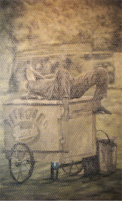 It’s an image of an old blackboard we had as kids in Iloilo City. This school blackboard that I painted brings back memories of my youth and experiences as a student. On it is a chalk writing that was partially erased which also hints the title of the painting, “Something Is Missing But Something Is Found”. The entire painting is covered with tiny bubbles which I hand-painted to look like bubble-wrap covering and to show the appearance that the painting is secured. Here, I was trying to show that an empty blackboard that is bubble-wrapped could be a work of art. True enough, it won first prized.
