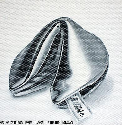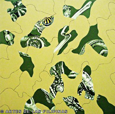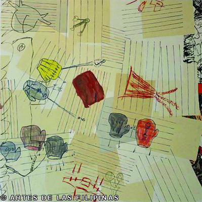 “The work (“Something’s Missing But Something Is Found”) is an amalgam of discomfiting dreamscape, eccentric puzzle, resolute conceptualism, a formalist trompe l’oiel; in brief a witty hybrid of visual conundrum and suspended disbelief. Beside this visual tour de force, even the most scintillating colors and radical compositions pale into significance.” — Cid Reyes : “ Philip Morris Philippine Art Awards – A Decade of Inspired Creativity.”
