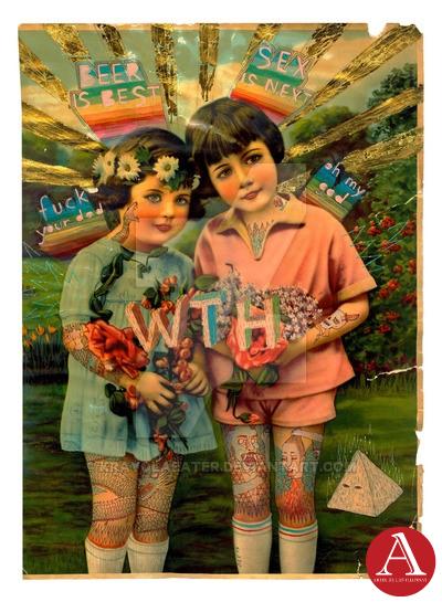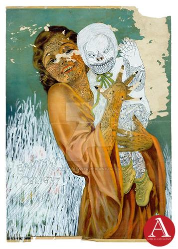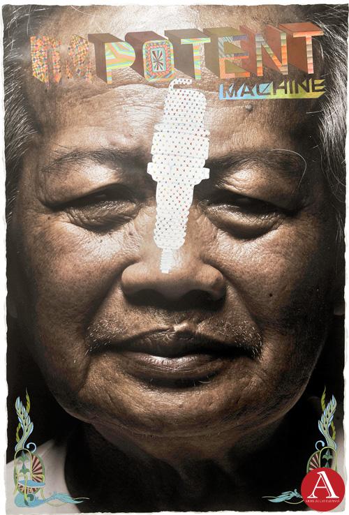 Norman Crisologo bought this piece but now I’m not sure if he still owns this. I put together the three different posters to make a landscape format. I have no particular concept about the work but the existing image gave me evil thoughts. They look demonic and suggestive so I showcased their real hell image. Look, it is not all the time that artists get to choose the image. Sometimes the image looks at the artist for the hidden image to come out. I also like the idea of me and the picture conversing together. Going back to the art piece, Blisfully Hell, that particular work became my breakthrough piece when it was showed at the First Manila Art Fair in 2009 under the Pablo booth. I gained a broader audience of art collectors after that. Trickie Lopa and Olivia Lao discovered me there, too. All of the collectors wanted to have that piece so I did a series of it but some said it’s not as strong as the first one. I didn’t care cause that’s what I felt during the time I was working on those succeeding series!