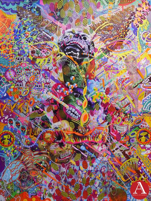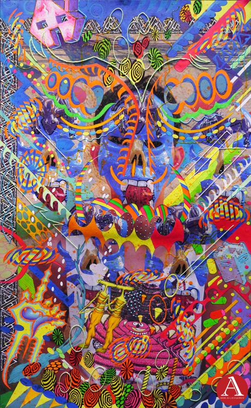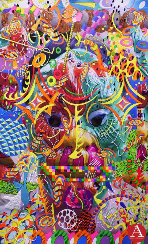 Before, yes. I applied it to my early works in my Paintograph show but the recent individual pieces were not like that anymore. I am just enjoying the impulsive quality of it. My current series are becoming more psychedelic and abstract in appearance. The semiotic quality was dissolved by the chemical images and abstract elements that I put in. Too acid that sometimes my work doesn’t care on the meaning anymore and the whole piece suggest to viewers that it’s the chemical effect of drugs (laughs).