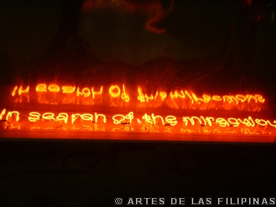 One show which made an impression on me was Lena Cobangbang’s “All that heaven allows” (Terrible Landscapes). She picked out pictures of disasters from magazines. She recreated a scene arranging food – vegetables, cake, etc., to look like the disaster. Then she took a picture of it. Looking at the picture is seeing a disaster scene- a vehicular accident, an earthquake, etc. until you realize you are seeing food. She expressed and presented her concept creatively with wit and intelligence.