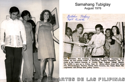 When the owner decided to close the gallery, I was so broken hearted that I decided to open my own. My dearest friend, Ms. Christy Pagaspas Hagedorn was partner.Together, we opened on Dec. 5, 1975, Galleria Duemila situated in Vernida Building, Amorsolo St., Makati. In 1975, we formed the group called Samahang Tubiglay with Vicente Manansala, as head member, Romulo Olazo, Lino Severino, Edgar Doctor, Ang Kiukok and many more watercolorists of that time. We planned to have a major activity once a year. I was elected as the secretary of the group.