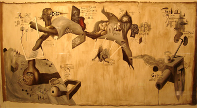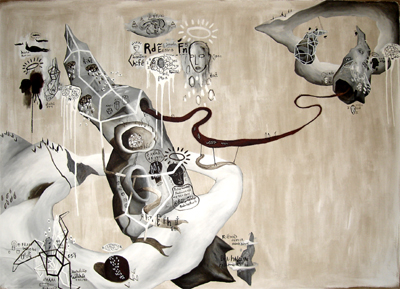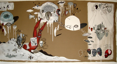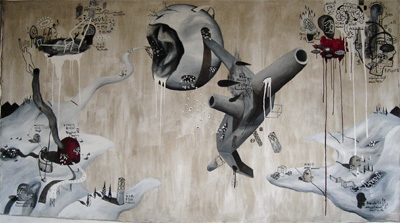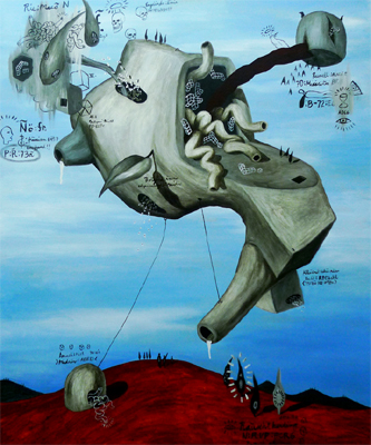 July 2009–In Philippine contemporary art, very few young artists have been the subject of much interest than  Ian Quirante, a progressive young artist of his generation, who employs surrealism and automatic painting in his works. Quirante’s treatment of space was not crowded; his compositions encompass the entire picture surface equally in all places and his use of strongly graphic and biomorphic shapes, phantasmagoric and cartoon-like figures all reveal his psychological ideas and personal visions. In this July 2009 interview, Ian Quirante shares his growing up years in Cagayan de Oro, his college years at the University of the Philippines, shifting from one course to another, the early phase of his career as an artist as well as his personal hobbies and interests.