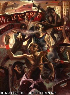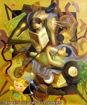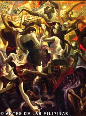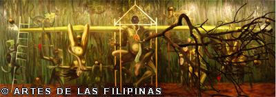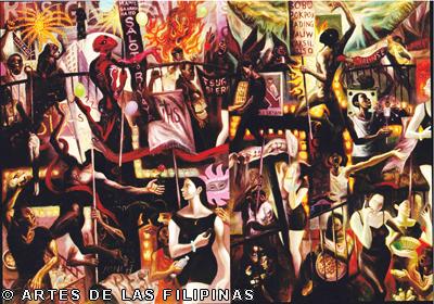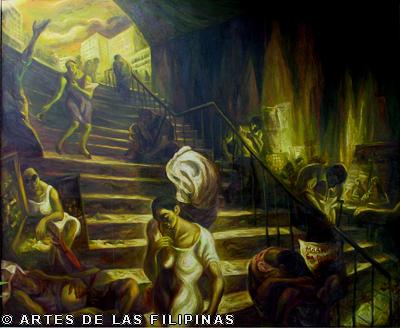 Among the Filipino artists I would collect Luna, Amorsolo, Manansala, Francisco, Ocampo, Legaspi, Alcuaz, Zobel, Chabet, Aguinaldo, Luz, Joya, Cabangis, Vinluan, Lao Lianben, Albor, Tence Ruiz, Doloricon, Fernandez, Soriano, Delotavo, Dalena, Olmedo, Baens Santos, Jose Legaspi, Leaño, Borlongan, Justiniani, Mallari, Montemayor, Manuel Ocampo, Aquilizan, Reamillo, Ventura, Esquillo, Nuestro, Cainglet, Jarque, Javier, Dreo, Coquilla, Cruz, Gonzales and Adrao, to name a few.