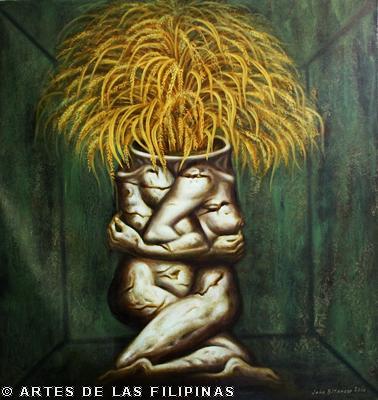 October-November 2010 — Jeho Bitancor is one of the more important and astute contemporary painters in the country today. In the mid-1980s, he emerged with quasi-surreal paintings as his early explorations in art but has since made a mark as a purveyor of social realist paintings. In his breakthrough works, Bitancor imbues his statements, ironies and epigrams in the hope that knowledge and awareness may serve as an impetus for change. His mature works, often of a personal and contemplative nature, have engaged the themes of society, the Filipino diaspora and other nexus of issues, experiences and thoughts. Yet taken together, Bitancor’s works put the viewer’s attention to those aspects of migratory experience that shatter or reinforce the Filipinos attachment to its homeland and its readiness to adapt to a new country. After three decades of achieving a fairly notable position, patronage and approval, Jeho Bitancor continues to improve himself as a painter and works harder for his works to address larger segments of its wider audience. In this November feature, Jeho Bitancor provides an account of his life and painting career, his artistic process and ethics and accompanies the lively discussion with his thoughtful body of works, giving a vivid portrait of himself as both an individual and a painter.