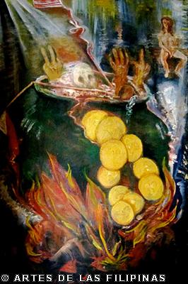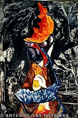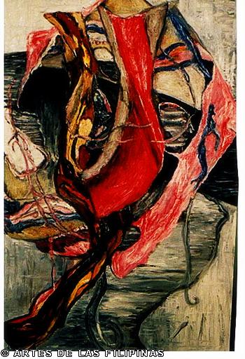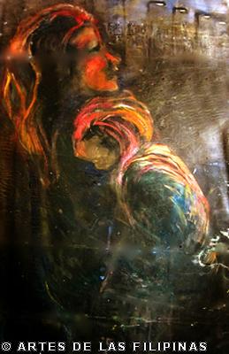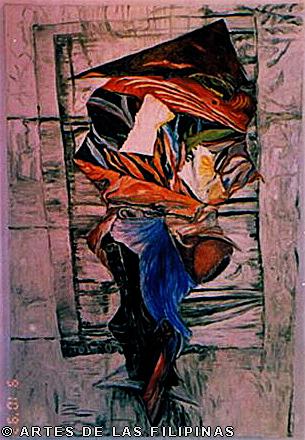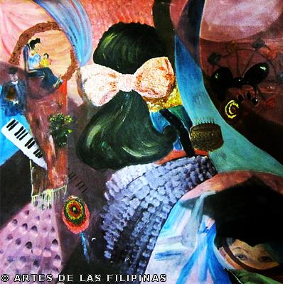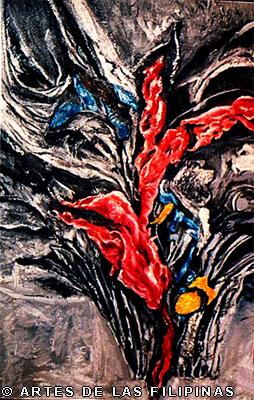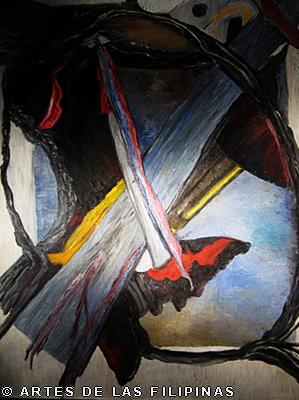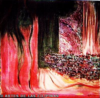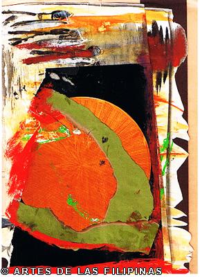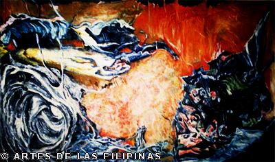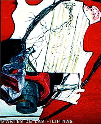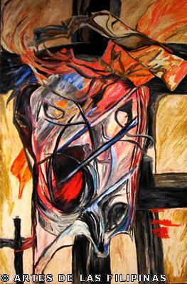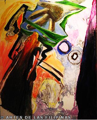 A little later, a group of us six student artists were chosen by Chabet to exhibit at the UP Arts and Science Building. This is notable, because Mrs. Nieves Epistola discovered me there. Her class in art history was asked to choose the painting they preferred. Among the six, two were chosen. When I showed up to talk about my work, they were surprised that it was a mother who did this big abstracted piece. From then on, she became one of my collectors and promoter. One of my paintings she donated now hangs at the UP Main Library Filipiniana section along with notables like Vicente Manansala, Anita Magsaysay-Ho, etc.