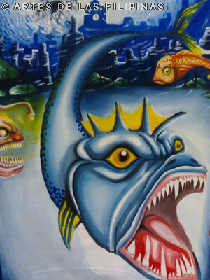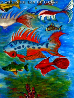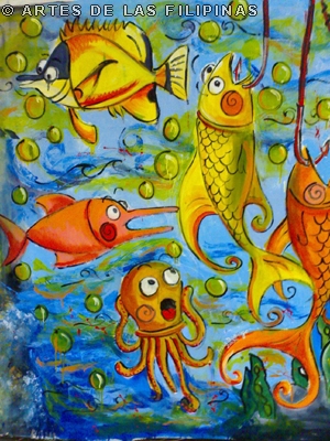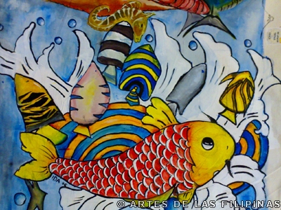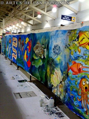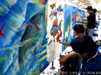 The second registration for the second batch of artists was last August 1-7, 2006. The theme of the painting was, “Fishes of the Ocean.” Last Sunday, August 13, it was the first day of the event and my first time to paint inside a mall with shoppers looking at my work. I was with two professors: Danilo Santiago and Ma. Rita Teresa Batalla – Laforteza, and some UST students.