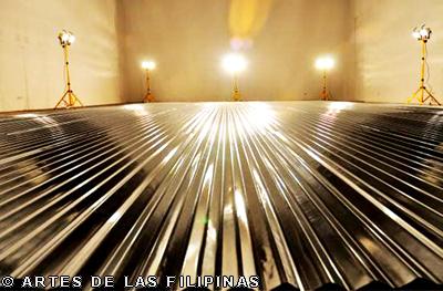 On the 208 square – meter ground floor of the gallery (a former warehouse), Chabet had 70 plain G.I. sheets laid on floor one after another, conforming to the space’s dimensions. He had seven flood lamps on stands installed on all sides.