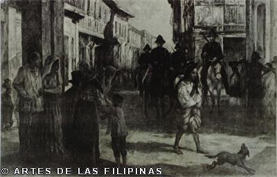Dramatic and romantic content characterized the central themes of Herrera’s mature works which led him to paint historical themes combing history books and seeking out surviving kins of historical figures to reconstruct significant events in history. Gabriela Silang Being Led to the Gallows, The Discovery of the Katipunan, The Battle of Manila Bay, The Battle of Imus and The Verdict, among several others were his important works. In 1951, along with Juvenal Sanso, he merited attention when he won second prize in the conservative category of the Art Association of the Philippines for his painting, Andamyo. Pugad Lawin (1963) and Kakang Pule (1964) were his two other winning works at the Bonifacio and Mabini and Centenary Art Competitions.