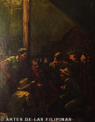 “Tipanan” is a story of love, security and beauty of life. It is an anecdotal painting that revolves around a narrative that Simon Saulog romanticized through the dramatic pose of the lovers. Similar to this work is “Love and Labor” owned by the family of the late Capt. Asisclo Castañeda.
