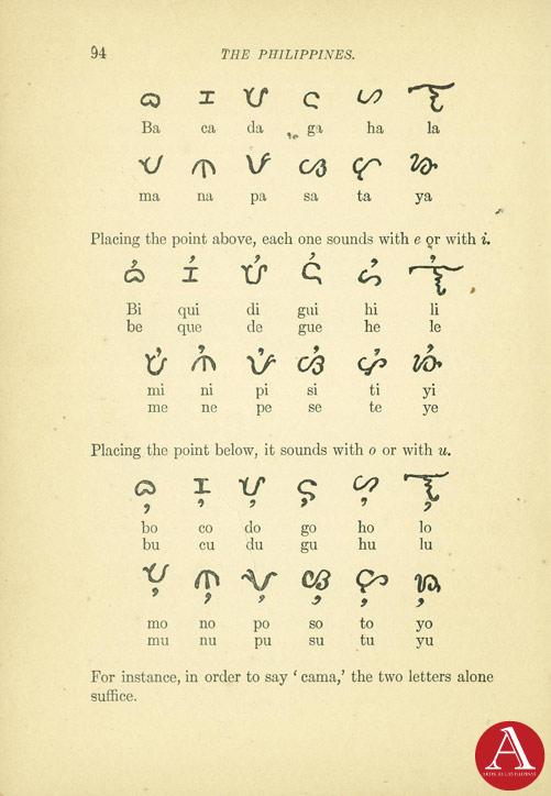 “So given are these islanders to reading and writing that there is hardly a man and much less a women, that does not read and write in letters peculiar to the island of Manila, very different from those of China, Japan, and of India, as will be seen from the following alphabet.