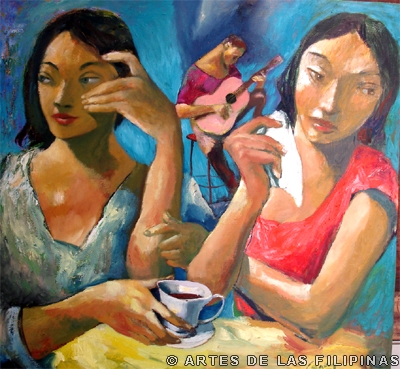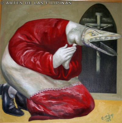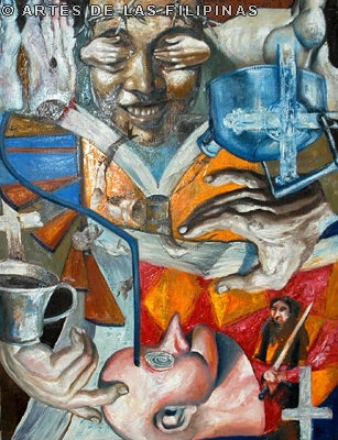 In 1985, as he was always far more interested in painting and drawing, Garibay returned to his studies in the University of the Philippines in Diliman to pursue a degree in the Fine Arts to learn the disciplines necessary in order to paint. While Garibay entered the artworld fairly late in his life, he made fast progress once he was in it. He became aware of the avant-garde trends of figurative expressionism where artists combined phantasmagoric visions with psychological insight: James Ensor (Belgian, 1860-1949), Oskar Kokoschka (Austrian 1886-1980), Elaine de Kooning (American, 1918-1929), Robert Beauchamp (American, 1923-1995) and those who delved darkly and mordantly into the grotesque such as Goya and Bosch. While he turned to avant-garde themes and styles, his early works were of traditional subjects. It was clear that even at his student days, Garibay was already exhibiting that strange mixture of conservatism and radicalism that characterized his artistic career. At the age of 24, he was set to make a career in painting.