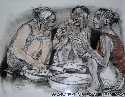 Many of Garibay’s paintings focus on everyday people and places. He painted ordinary people in an attempt to portray them as a political entity. In this way Garibay’s activism showed through in his work. He truthfully portrayed ordinary people and places, leaving out the glamour that most Filipino artists added to their works. Garibay says that, “it is the richness of the poor that I am drawn to and which I am part of that I want to impart in my art.” He bemoans that among the things that are central to him is the knowledge of the self– the individual vis-à-vis the community or a collective self-awareness which he feels is lacking in the consciousness of the Filipinos.